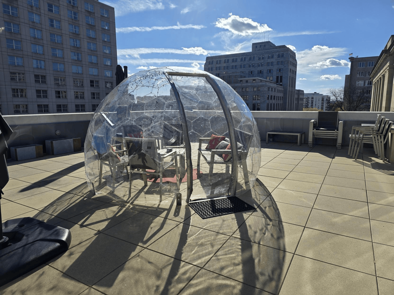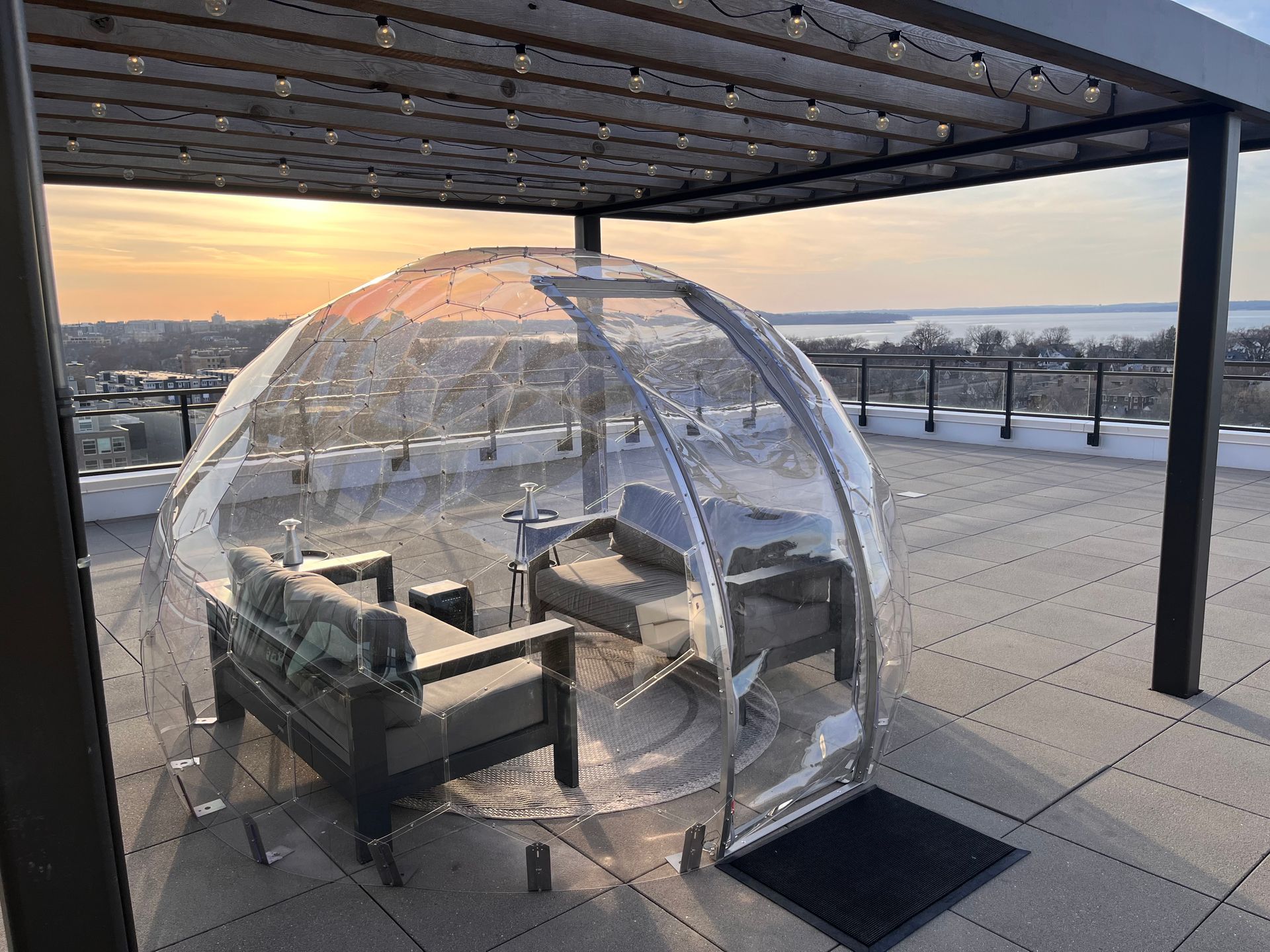 These clear, cozy bubbles are now set up on the community terraces at some of our favorite Stone House Development spots: Starkweather Place, Arden, Lyric, and Novo. Whether you’re enjoying a solo coffee with skyline views or gathering with friends for a rooftop happy hour, these domes are your cold-weather sanctuary.