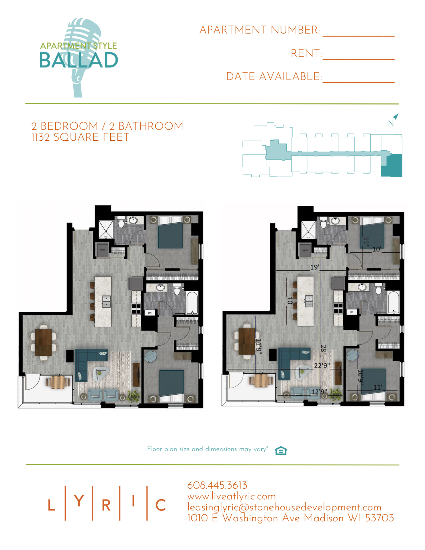 Ballad Floor Plan - 2 Bedroom - Downtown
